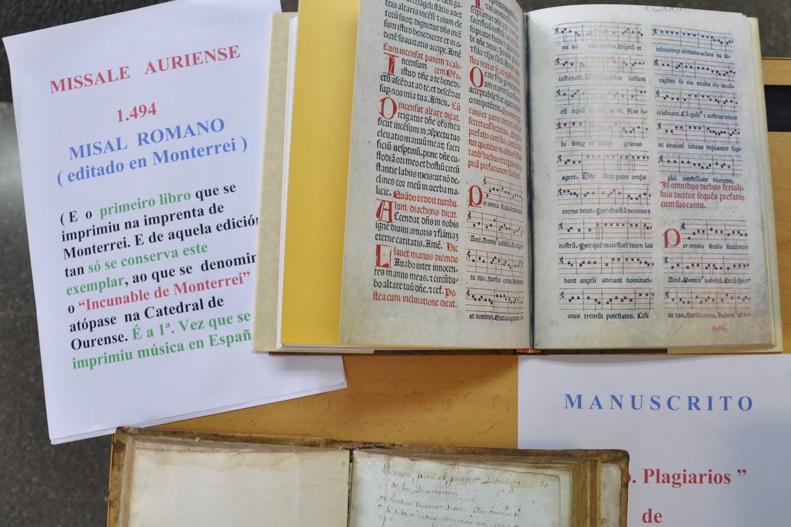 Hoy celebramos en el Instituto el Día del Libro con una magnífica exposición de libros antiguos, organizada por la Biblioteca. Gracias a las personas que amablemente colaboraron aportando libros, profesores y alumnos pudieron admirar ejemplares tan valiosos como un facsímil de un libro de 1496 editado en la imprenta del castillo de Monterrei (la primera de Galicia), un misal de 1780, una edición del ’Quijote’ de 1832, diversos libros de texto, gramáticas y diccionarios de finales del siglo XIX y principios del XX, novelas varias publicadas en Francia y España, un número de la revista ’Blanco y Negro’ de 1925... Una oportunidad excepcional para aprender y disfrutar de auténticos tesoros bibliográficos.